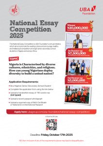 UBA Foundation, the Corporate Social Responsibility arm of United Bank for Africa (UBA) Plc, has commenced the 2025 edition of its annual National Essay Competition (NEC), with winners set to grab over N18m in educational grants and consolation prizes.